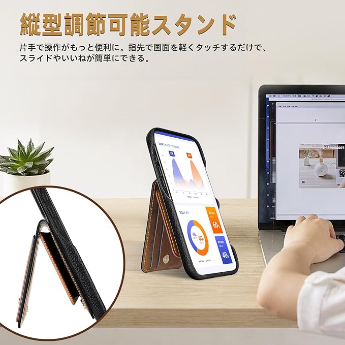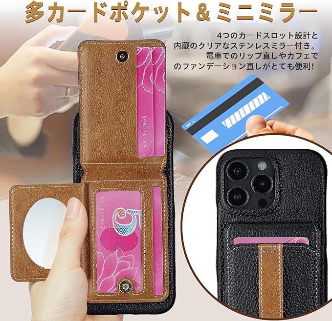 【カード収納&ピタッと閉めるスナップ式】カード収納ポケットが 5つあり、カード、名刺、定期券、免許証や写真などを入れ出来ます、収納した物が落とす心配もいらないです!マグネット式の縦型開口財布型デザインのケースは何時でもしっかり閉められる、シンプルで便利なだけでなく、コンパクトで美しいです。