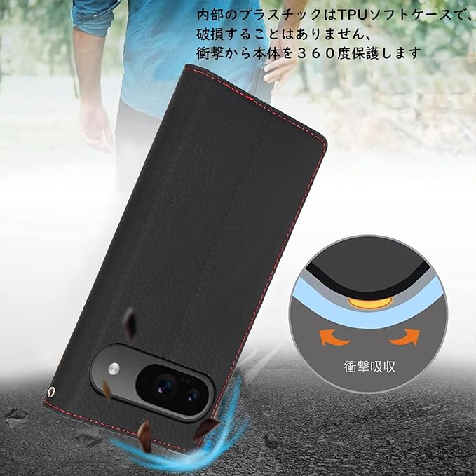 【収納】Google Pixel 9 / 9 Proケース内側に実用性のカード入れポケット 3、内側ポケット 1、カード類、現金、名刺、免許証入れなどを収納でき、通勤も通学にも楽々タイプです。カードスロットに2枚のカードを入れると、内蔵マグネットの機能を最大限に発揮し、カードが消磁されるのを防ぐことができます。横置きスタンド機能が付きまして、好きな角度を調節です。映画を見たり読んだりすることで手を解放できます。