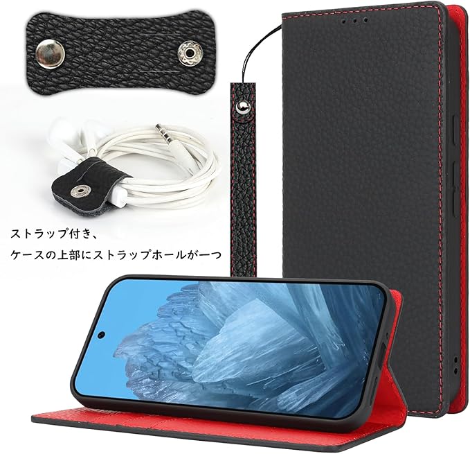 Havaya 対応 Pixel9 pro ケース Pixel9 ケース ピクセル9 ケース 手帳型 本革 ストラップ Google グーグル スマホケース docomo au 耐衝撃 カバー SoftBank カード収納 スタンド機能 レザー -ブラック