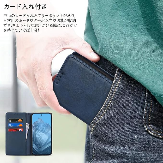 Google pixel 9 pro XL ケース 手帳型 耐衝撃 pixel9proXL ケース 手帳 docomo au SIMフリー softbank 全対応 ピクセル9proXL カバー グーグル ピクセル9プロXL カバー ピクセル 9proXL 適用 case iCoverCase マグネット カードケース スマホケース カード入れ スタンド 落ち着いた色 レトロ ネイビー