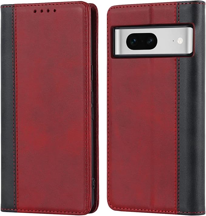 Havaya 対応 Google Pixel 7 ケース グーグルピクセル7 ケース 手帳型 カバー グーグル スマホケース docomo au 耐衝撃 SoftBank カード収納 スタンド機能 フェイクレザー-レッド+ブラック