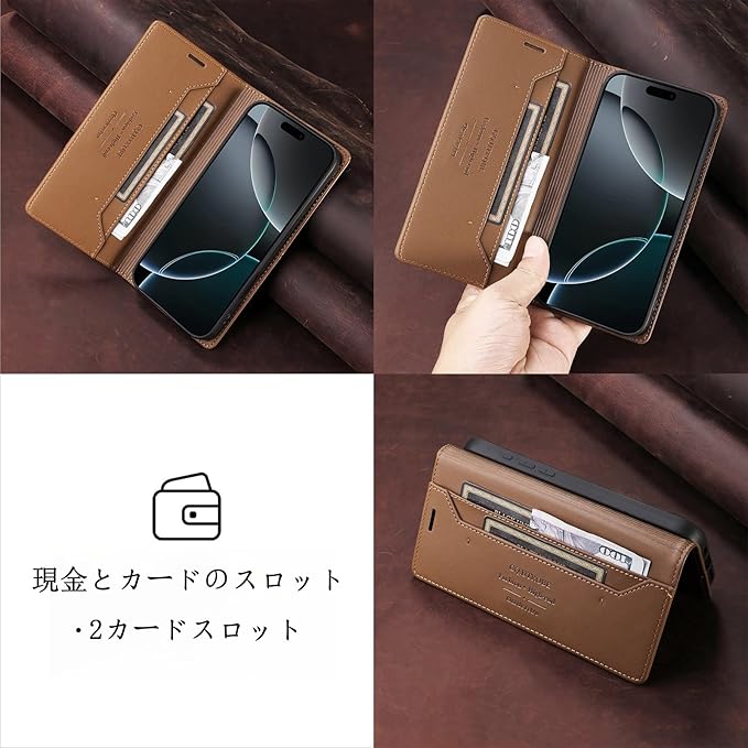 Google Pixel 8a 用 手帳型 スマホケース 財布型 [RFIDブロッキング] カード収納付き 高級PUレザー 耐衝撃 マグネット式 スタンド機能 全面保護 (ブラウン, Google Pixel 8A)