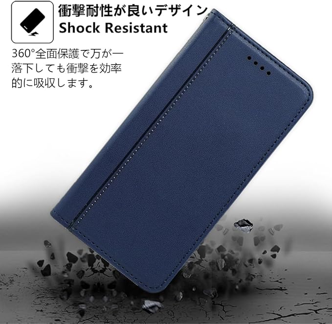 【機能性1:高品質PUレザー】外側のカバーには手触りがとても良い高品質の合成レザーを採用します。内側のスマホホルダーは柔軟なTPU素材を採用したソフトケースとなります。汚れにくくて指紋防止の特徴を持っております。耐衝撃の二重構造で落下の衝撃をうまく吸収します、本体をしっかりと守ります。