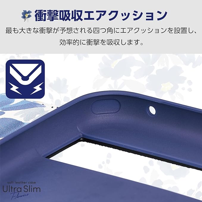 エレコム Google Pixel 8a ケース カバー 手帳型 ソフトレザー TPU 耐衝撃 衝撃吸収 軽量 薄型 カード収納 ポケット スタンド機能 財布型 ワイヤレス充電 対応 マグネット内蔵 おしゃれ 可愛い 花柄 ネイビー PM-P241PLFUJNV