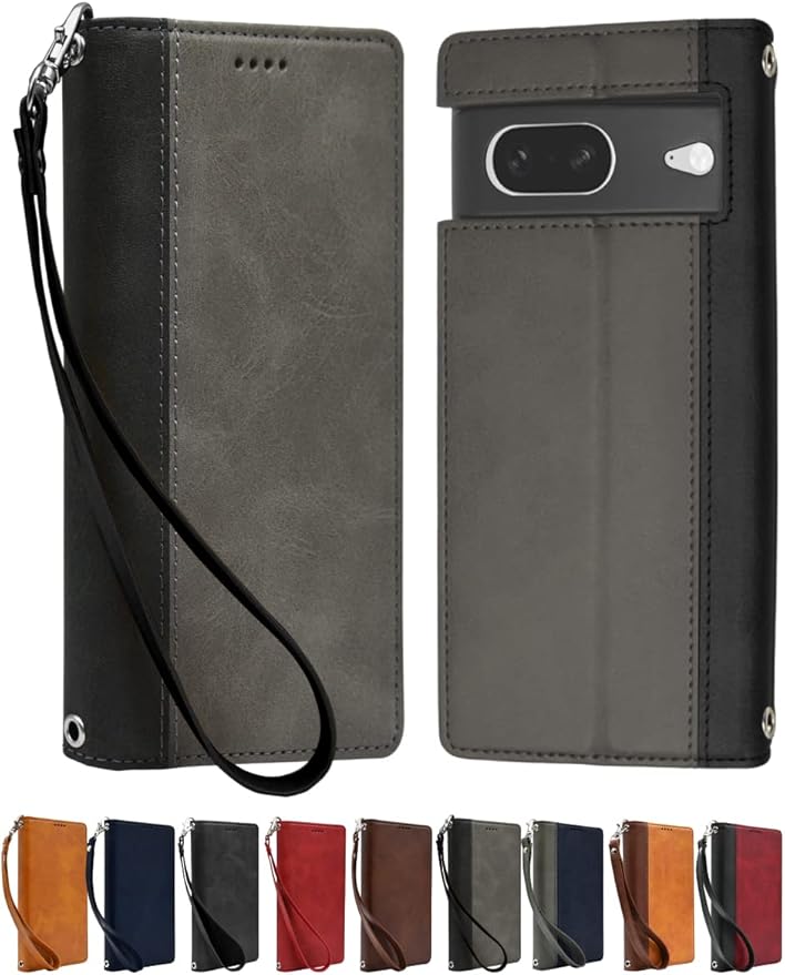 シズカウィル Google Pixel7 ケース カバー 手帳型 本革調 レザーケース 1個入り グレー ブラック 1個入り