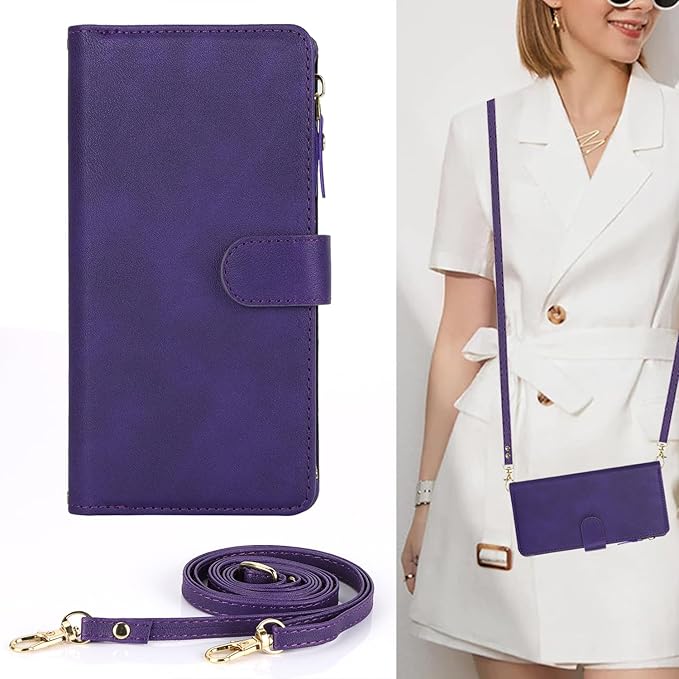 Eastwave for Google Pixel 8 Pro ケース for pixel 8pro 縄掛けケース for Google Pixel8 Pro 手帳型 財布型 ICカード コインポケット ストラップ付き カード 収納 小銭入れ ファスナーポケット付き PUレザー 6色 パープル