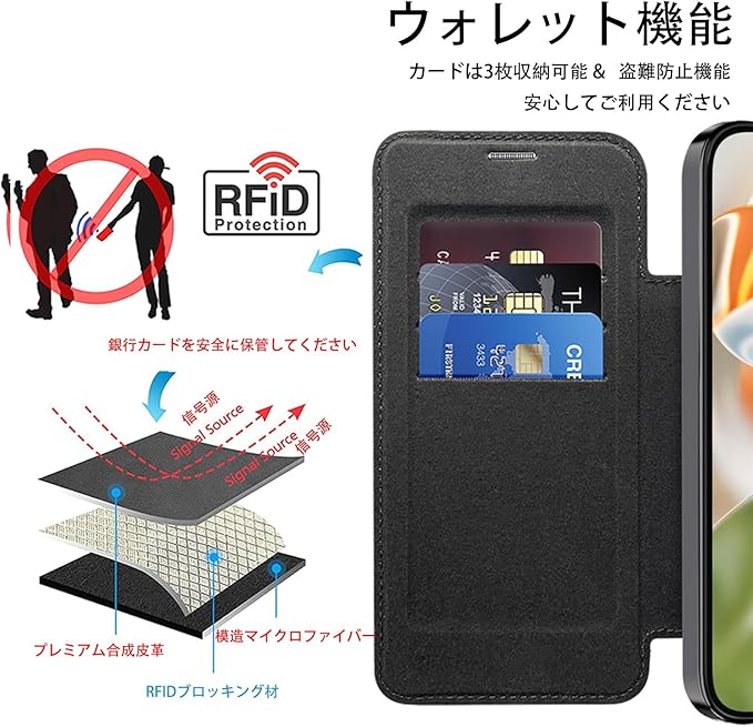 ●カード収納3枚、携帯電話カメラレンズ保護フィルム内蔵:Google Pixel 9 Pro XL ケース カード マグネット方式なので、スマートに開け閉めが可能。カードポケットがついています。クレジットカード、定期券、名刺、札など収納できます。カメラカバー付き!衝撃や擦り傷からレンズを保護します。