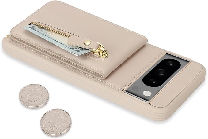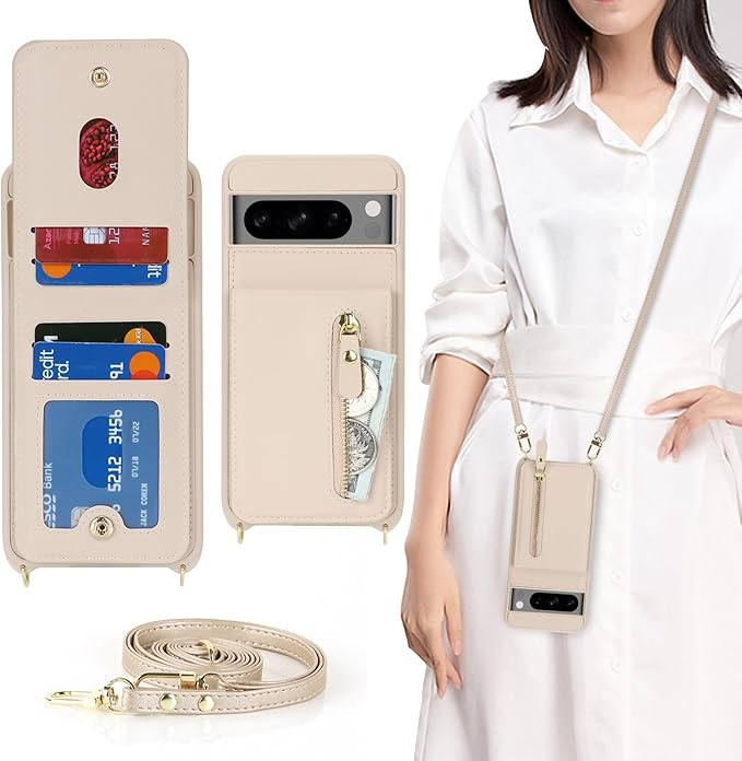 Google Pixel 8 Pro ケース ショルダー ストラップ付き ショルダーケース 背面フリップ 上下開 手帳型 Google用pixel8pro SIMフリー softbank au 対応 グーグル ピクセル8プロ カバー pixel8proスマホケース case 適用 iCoverCase カード収納 縦置き スタンド 肩がけ 首掛け 斜め掛け 携帯カバー ベージュ