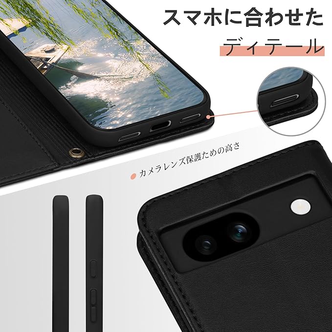 シンプルなデザイン:衝撃吸収性に優れたTPUを採用し、画面より少しだけ高く設計されたコーナーが全周をカバーしているのであらゆる角度からの落下に対して安心感が増やしています。オシャレ大人のPixel 8a 手帳型ケースです。