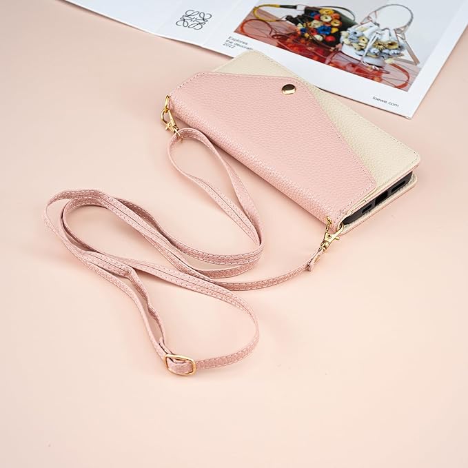 case for Google pixel 9/ 9 Pro 通用カバー グーグル ピクセル9/ 9 Pro ケース手帳型かわいい おしゃれ ショルダー 斜めがけ ストラップ スタンド機能付き 財布型 マグネット付き カード収納 耐衝撃 全面保護 (B1-ピンク, に適用するGoogle pixel 9/ 9 Pro通用)