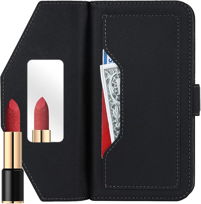 【収納力抜群】:ケース内側にはカードを2-3枚収納できるカードポケットとメモ、2枚の紙幣など収納できるポケットがあります。Dカードや運転免許証、交通カード、クレジットカード、ICカード、定期券、名刺などが収納でき、家族の写真などが収納でき、中央に穴があり、急ぎ時に指一本で簡単に押し出すカードポケットです。カードを持ち運びしやすいカードスロット設計のビジネスウォレットは、あなたの人生をより便利にします。化粧鏡付き、女の子は化粧に大便利!