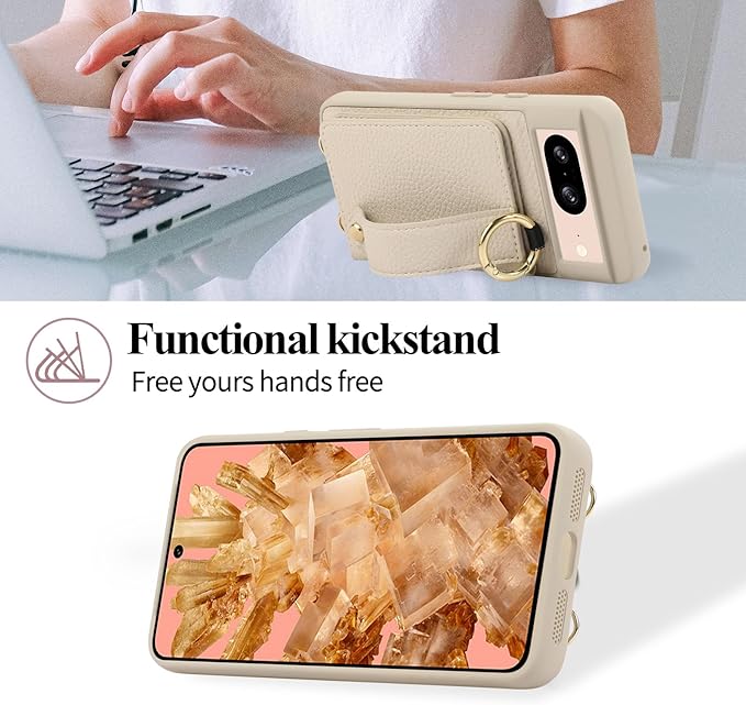 UnnFiko For Google Pixel 9 Pro ケース 財布型スマホケース 手帳型 便利性 ウォレットケース フィンガーリング カード収納 携帯ストラップ付き グーグルピクセル9 Pro バンパー スタンド機能 ストラップ付き google pixel 9 Pro カバー 本革 レザー カード入れ 携帯保護カバー (Google Pixel 9 Pro,ホワイト)