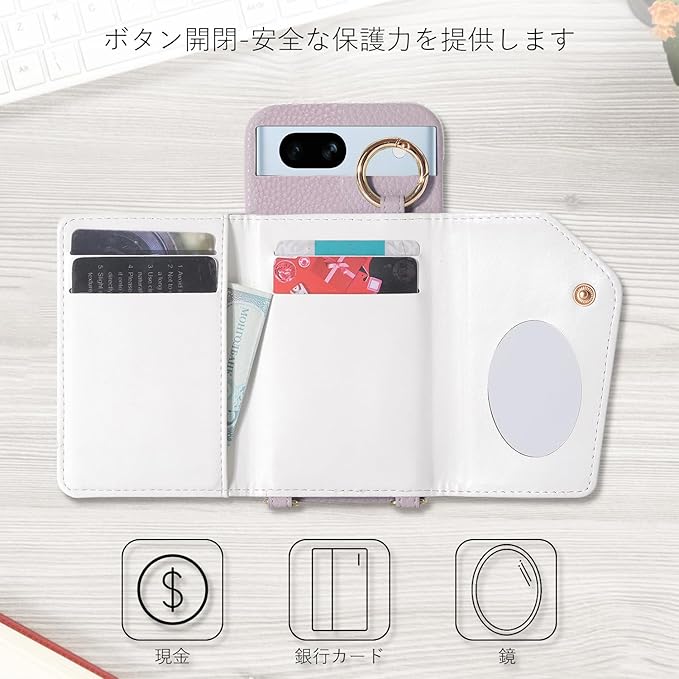 Google Pixel 7a ケース 手帳型 女性 おしゃれ グーグル ピクセル 7a スマートケース 軽量薄型 シンプル ピクセル7A 携帯ケース 韓国 肩掛け 斜めがけ ストラップ Pixel 7A カバー 背面カードポケット付き 耐衝撃 Pixel7a 6.1 インチ 対応 スマホカバー ミラー 化粧鏡付き 横置き可 便利 多機能 落下保護 タッチペンプレゼント (紫, Pixel 7a)