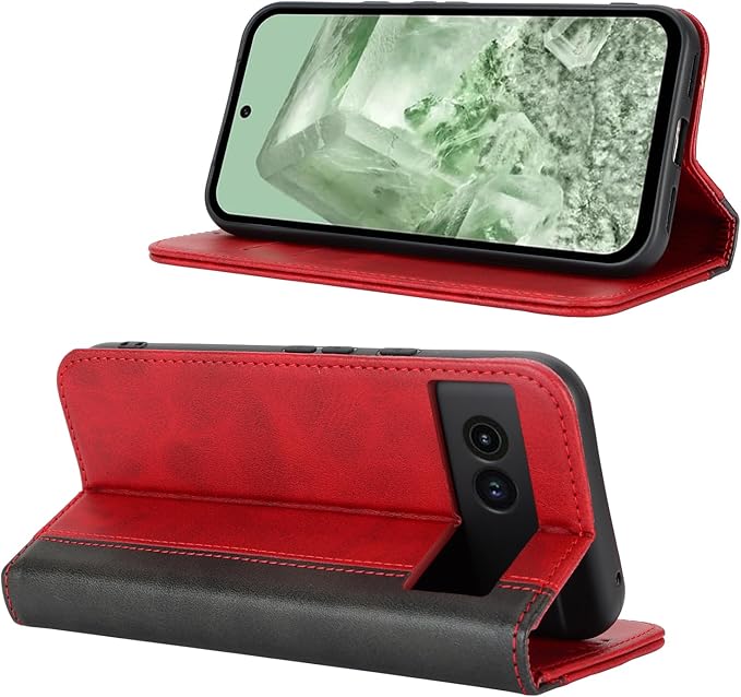 Google Pixel 8a ケース 手帳型 pixel8a au docomo ドコモ SIMフリー softbank 全対応 手帳型ケース グーグル ピクセル 8a カバー スマホケース 手帳ケース pixel8A 携帯ケース case 適用 カードケース iCoverCase 合成皮革 内蔵マグネット 携帯カバー スタンド機能 落ち着いた色 2色組合せ レトロ レッド
