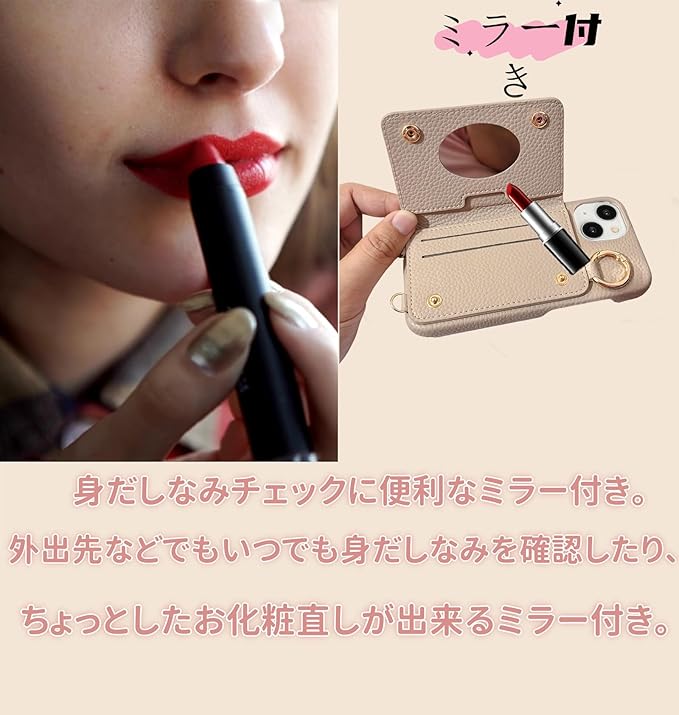 2.スマホカバー スマホケース ショルダー ストラップ付き ショルダーケース ストラップ付きケース ストラップケース ショルダータイプ 紐付き ミラー 鏡 首掛け 肩掛け 紐 カバー シンプル 無地 おしゃれ お洒落 可愛い かわいい 大人