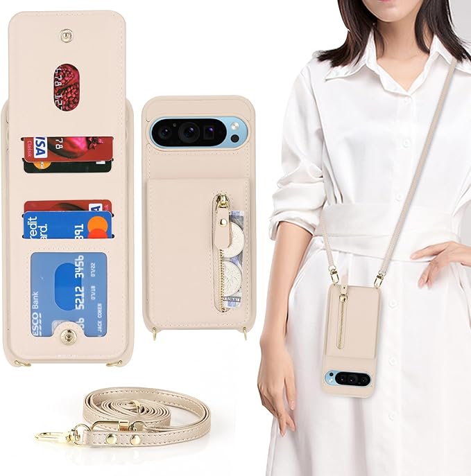 Google Pixel 9 Pro XL ケース ショルダー ストラップ付き ショルダーケース 背面フリップ 上下開 手帳型 Google用 pixel9proXL docomo au SIMフリー softbank 全対応 グーグル ピクセル9プロXL カバー case 適用 iCoverCase カード収納 縦置き スタンド 肩がけ 首掛け 斜め掛け 携帯カバー ベージュ