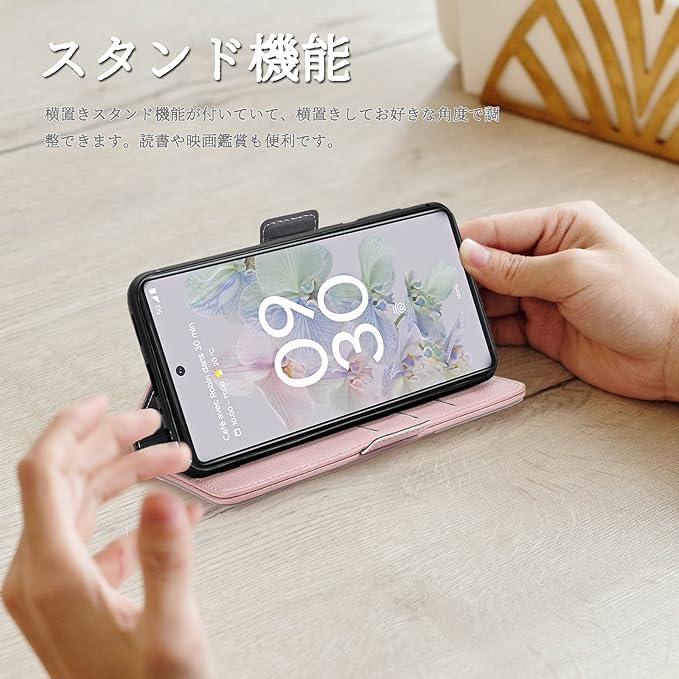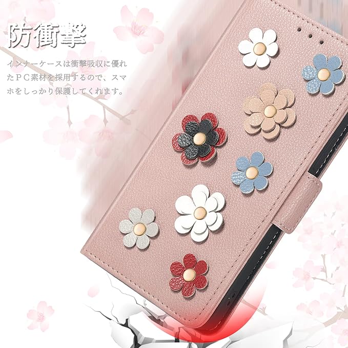 【健康安全なPUレザー|女性向けオシャレケース】オシャレの花柄、女性向けオシャレケース。表面はPUレザーを使用、手触りが良い、滑り止め、耐久性、快適、通気性の特性がある。長時間使用の間、手汗が出て来てもケースは変な匂いはございません。インナーケースは衝撃吸収に優れたPC素材を採用するので、Google Pixel 6Aをしっかり保護してくれます。