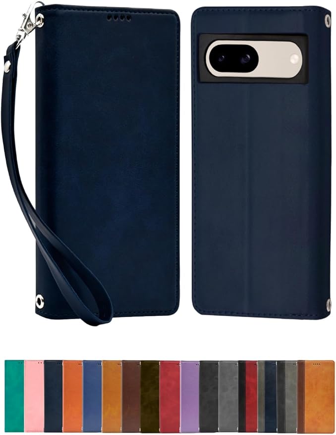 シズカウィル Google Pixel 8a ケース カバー 手帳型 本革調 レザーケース ネイビー 1個入り