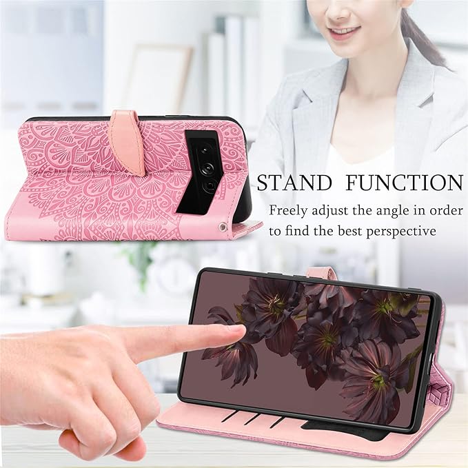 Google Pixel 7 Pro 手帳型ケース 可愛い 女性 レディース グーグル ピクセル7 プロ スマホカバー 自由 夢の翼 PU革 縄掛け 人気 韓国 docomo au Pixel7 Pro SIMフリー 携帯カバー スキミング防止 googleピクセル7プロ スマホケース スタンド可 カード収納 木の葉デコ マグネット グーグル ピクセル 7 プロ 通用カバー (Google Pixel 7 Pro, ピンク)