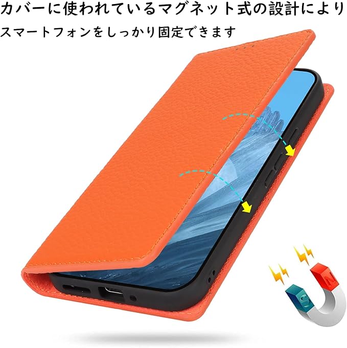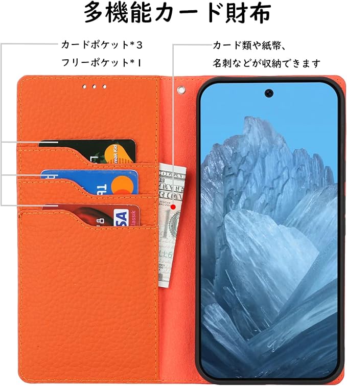 Havaya 対応 Pixel9 pro ケース Pixel9 ケース ピクセル9 ケース 手帳型 本革 ストラップ Google グーグル スマホケース docomo au 耐衝撃 カバー SoftBank カード収納 スタンド機能 レザー -オレンジ