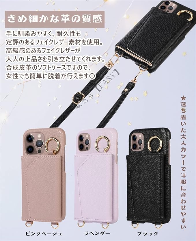 ● 定期やポイントカード収納に便利なカードポケット有。ICカードやポイントカードを入れれば通勤・通学にも便利♪。ケースに長めのストラップがついたデザインは、ハンズフリーでスマートに持ち運びができます。普段使いから、ちょっとしたパーティーまで活躍してくれるパーティーアクセです。