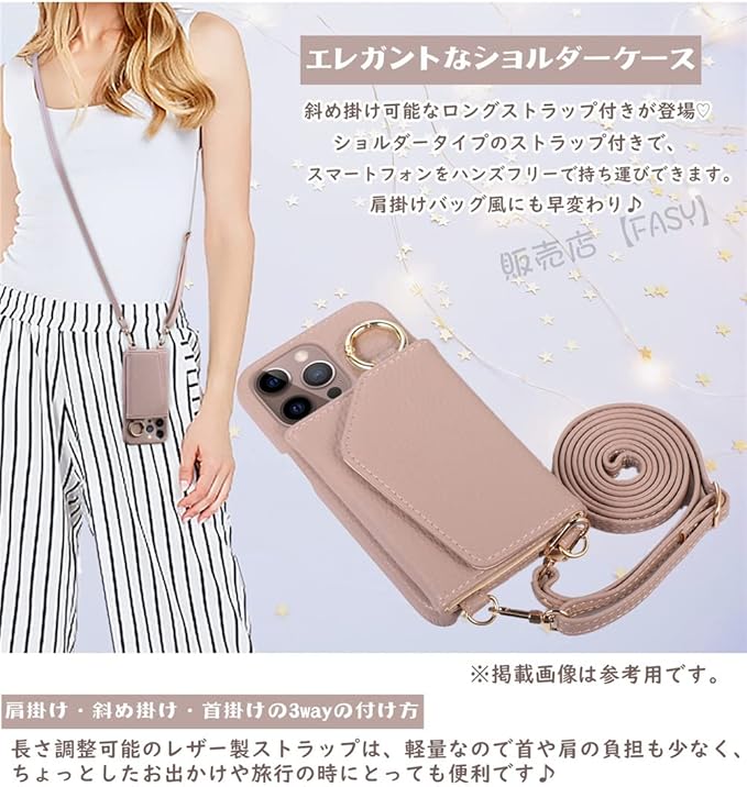Google Pixel7A ケース ショルダー ストラップ FASY グーグル ピクセル7 カバー Google Pixel 7 スマホケース ショルダー タイプ ミラー 鏡付き グーグル ピクセル 7 スマホストラップ 肩掛け 背面手帳型 財布型 かわいい おしゃれ 革 耐衝撃 レザー スマホ 携帯 ケース ショルダーGoogle Pixel7A スマホ 携帯 ケース ショルダー 斜め掛け リング付き 首掛け ピンクベージュ
