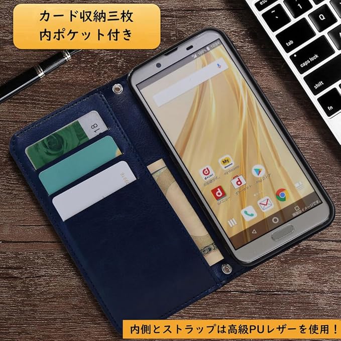 [楽々ショップ]Pixel 6a グーグル ピクセル 用 スマホケース 手帳型 合皮 レザー ケース カバー カードポケット デニム ジーンズ ダークブルー Pixel6a-PUCF-W155-D1-Y4