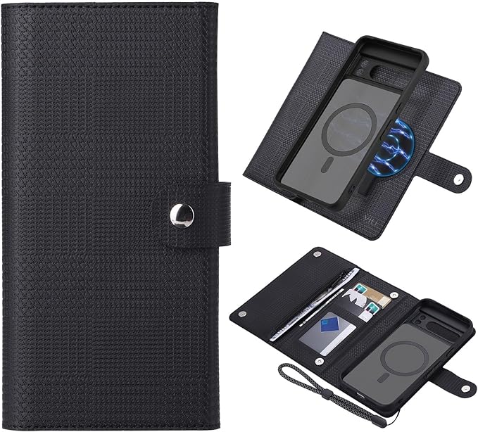 ViLi-GHB Google Pixel 8a 対応 2in1 財布 カード収納 取外し可能 マグネット 着脱式 分離式 ストラップ付き 2WAY 手帳型ケース グレンチェック調 黒 CPIX8a-VL-GHB-BK