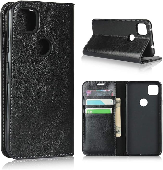 Eastwave for Google Pixel 4A ケース for google pixel4a Case 財布型 カバー 収納ポケット 牛革製品 ポケット収納付き 横置きスタンド機能 4色 ブラック