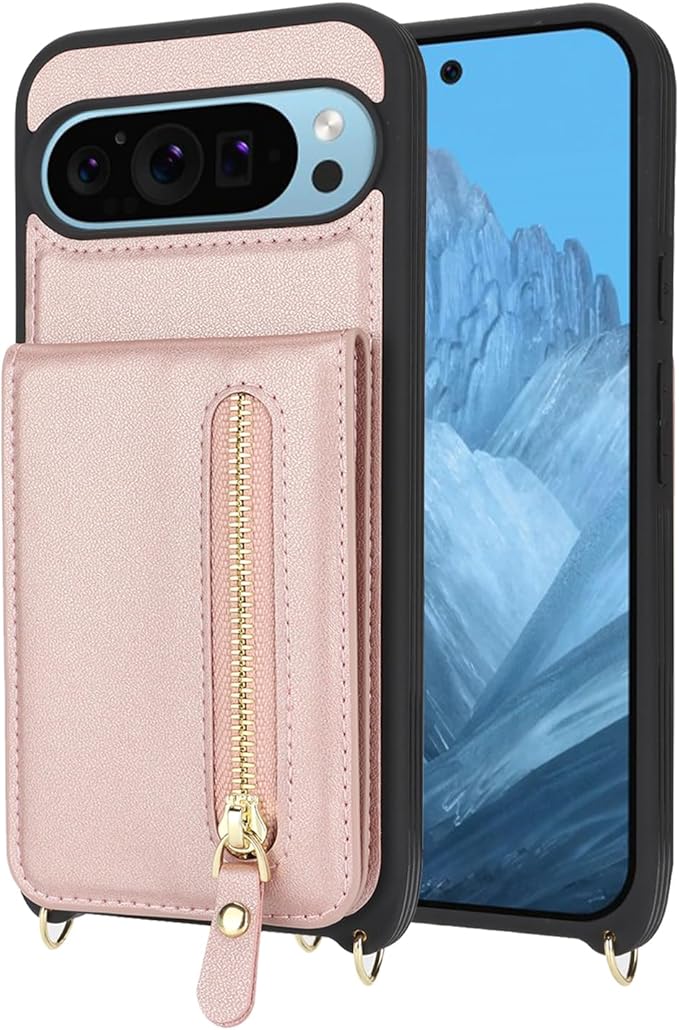 Google Pixel 9 Pro XL ケース ショルダー ストラップ付き ショルダーケース 背面フリップ 上下開 手帳型 Google用 pixel9proXL docomo au SIMフリー softbank 全対応 グーグル ピクセル9プロXL カバー case 適用 iCoverCase カード収納 縦置き スタンド 肩がけ 首掛け 斜め掛け 携帯カバー ピンク
