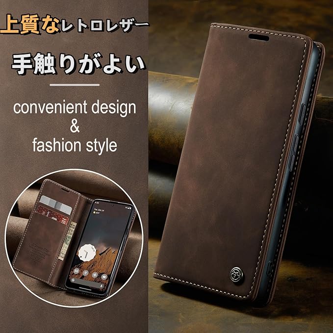 【AssassinCat】ケースPixel 9/Pixel10適合ケース 手帳型 上質なレトロPUレザー 対応グーグルピクセル 9/9pro向け 携帯カバー 薄型 マグネット式 pixel 9Proために カバー スタンド機能 ピクセル 9proの代替品 肌感レザー カード収納 お札入れ 耐衝撃 耐汚れ 全面保護 財布型 シンプル ビジネス風(ブラウン)