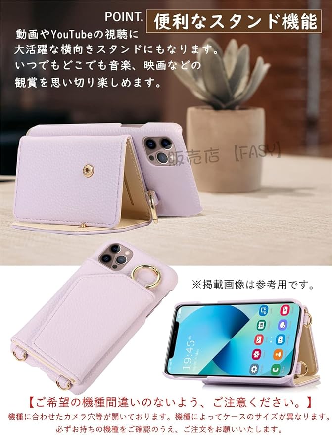 ● 商品名:スマホケース、ミラー機能、カード収納、ショルダーバックの多機能ケース。