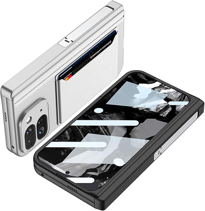 【磁気吸着ヒンジ保護カバー】【カード収納ポーチ】【スタンド機能】:ヒンジの位置に特別な磁気吸着ヒンジ保護カバーが追加され、スマホのヒンジにより完全な保護を与えることができます。そして、自由自在に動作でき、折り畳み効果に影響を与えません。背面には専用に設計されたカード収納ポーチがあり、中には 2 つのカード収納スロットがあり、銀行カード、バスカードなどを入れることができます。外出するとき、財布を持たなくてもいいです。また、背面には特別な隠し式スタンドが設計されており、開くとスタンド機能を実現でき、必要ないときは完全に隠すことができます。
