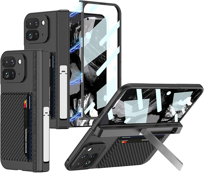 GG Pxl 9 Pro Foldのケース 薄型 軽量 マットの表面 カード収納 強化ガラス保護フィルム 折り畳み 滑り防止 ヒンジ保護 金属スタンド機能 ワイヤレス充電 全面保護 レンズ保護 手帳型 指紋防止 可愛い 面白い おしゃれ フリップ 磁気 カバー キャラクター 携帯電話 落下防止 財布型 スマホ Beautycatcher - 炭素繊維/黒