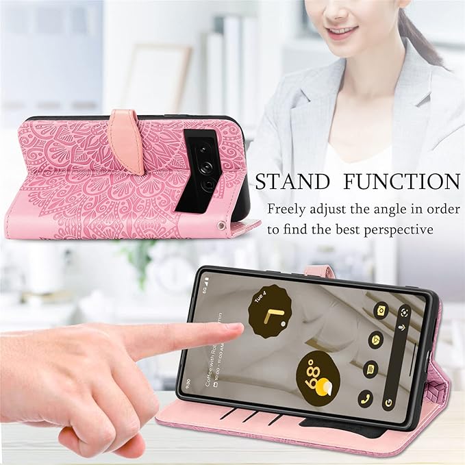 Google Pixel 7A 手帳型ケース 可愛い 女性 レディース グーグル ピクセル7A スマホカバー 自由 夢の翼 PU革 縄掛け 人気 韓国 au SIMフリー softbank ソフトバンク docomo ドコモ 全対応 携帯カバー スキミング防止 pixel7A スマホケース スタンド可 カード収納 木の葉デコ マグネット ピクセル7a 通用カバー (pixel7a, ピンク)