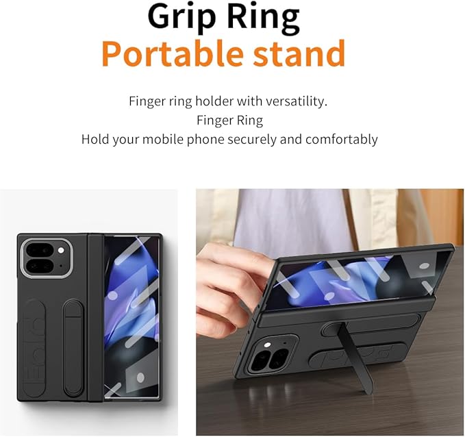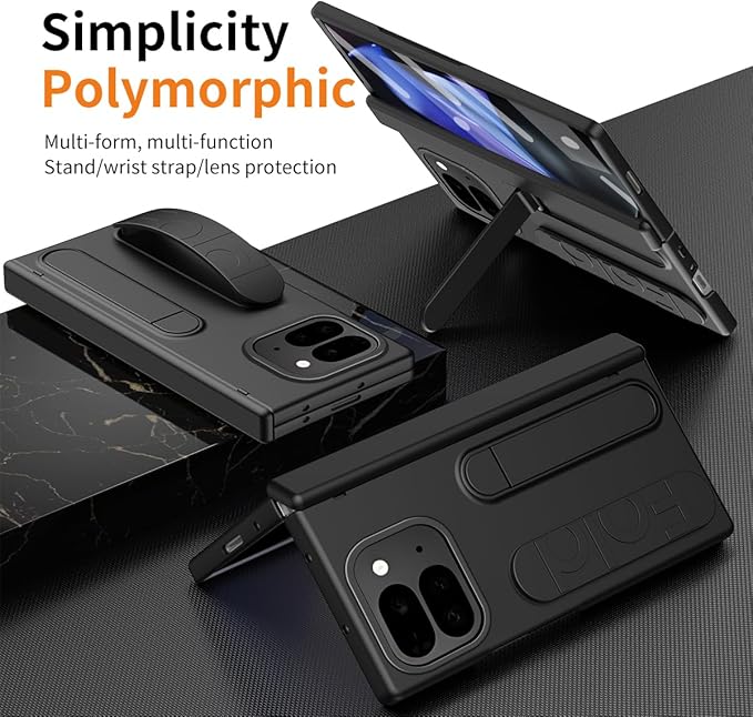 GG Pxl 9 Pro Foldのケース 薄型 軽量 全面保護 リストバンド ヒンジ保護カバー スタンド機能 肌にやさしい感触 手帳型 強化ガラス保護フィルム レンズ保護 ワイヤレス充電 折り畳み 携帯電話 マットの表面 指紋防止 フレーム 耐衝撃 滑り防止 人気 可愛い 面白い 窓 おしゃれ フリップ スマホ Beautycatcher - 黒