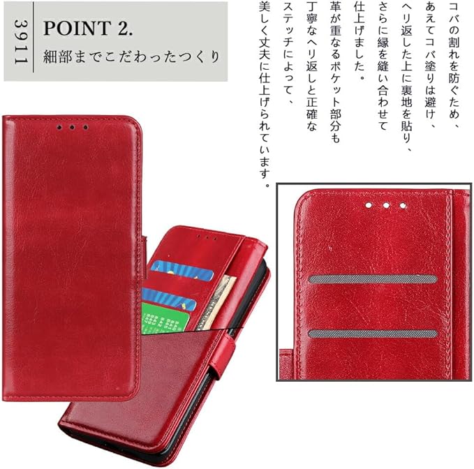 マグネット内臓ベルト式は、しっかりとした装着感を提供し、スマートフォンがケースから外れにくくなっています。