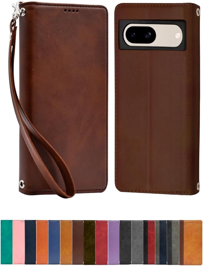 シズカウィル Google Pixel 8a ケース カバー 手帳型 本革調 レザーケース ダークブラウン 1個入り