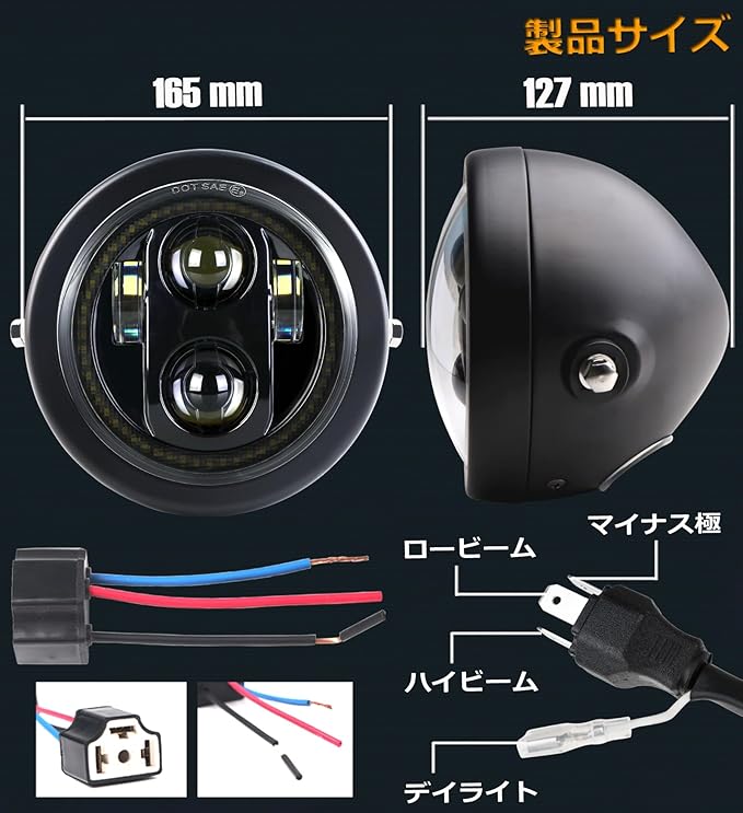 アップグレードLED 5.75インチヘッドライト:ブルーハローDRLを備えた5.75インチLEDオートバイヘッドライトは、ご愛車にスポーティな外観を与え、ユニークでスタイリッシュにします。
