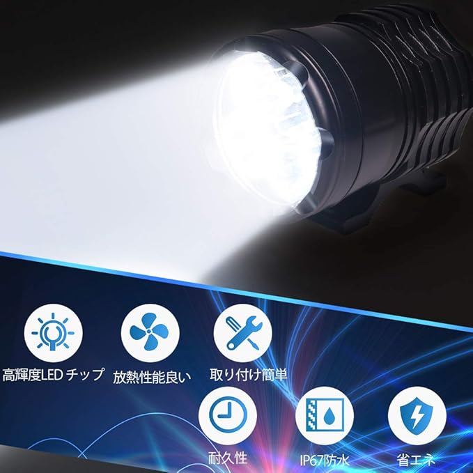 高輝度LED:高品質な4連LEDを使用しており、普通のライトより遠くまで明るく照らすことができます。夜間や悪い天気で視認性を向上させます!