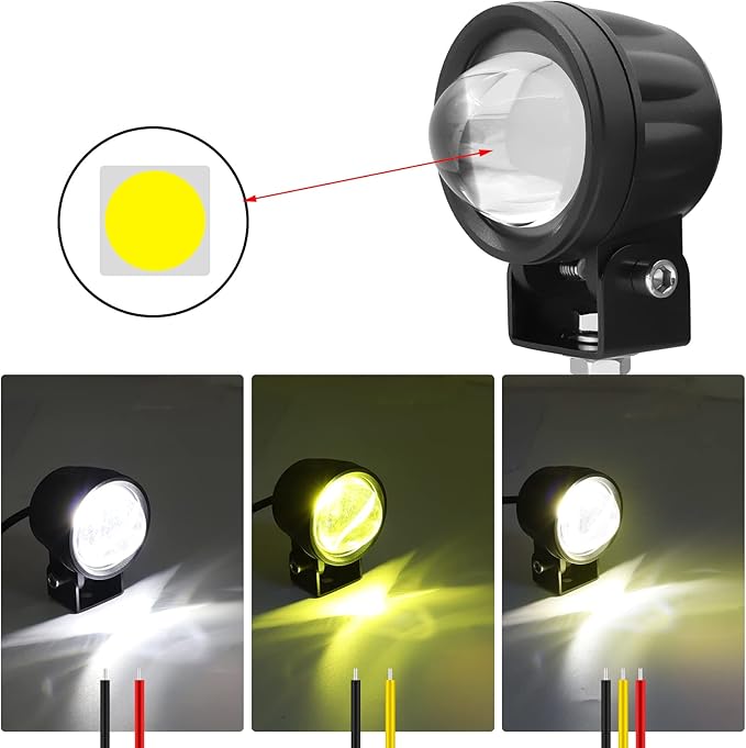 Biqing 3つのワイヤーを備えたモータークルフォグライトオン/オン/オフ、アンバーホワイトスポットライト補助ライト オートバイフォグライトスポットライトイエローライトと白色光