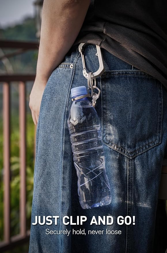 主な使用例: リュック用ボトルホルダー | ベルトクリップ式ボトルホルダー | ハイキング&ランニング用ボトルカラビナ | EDC水分補給アクセサリー