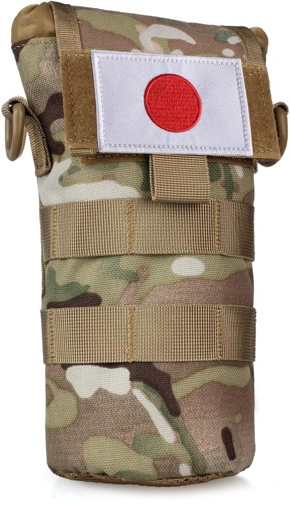 Molle対応で装着が簡単: 水筒ポーチの背面には2本のMolleストラップと金属製バックルが付いており、タクティカルバックパック/ベルト、その他のMolleシステムに取り付けることができます。2列のMolleウェビングを装備し、アクセサリーやMolleギアを取り付けることができます。