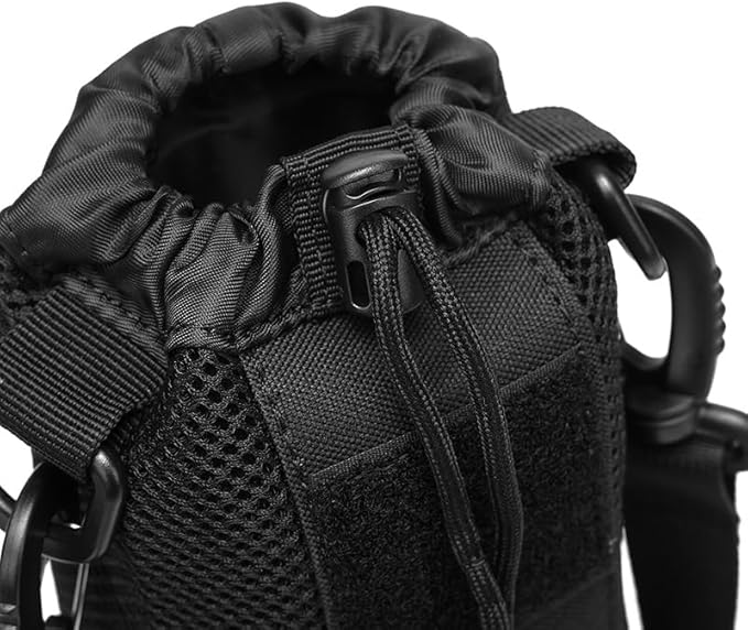 [lalarimi]水筒カバー ペットボトルホルダー 1L/1.5L対応 耐水ナイロン製 調節可能ストラップ付き アウトドア/通勤/旅行用 スマホ収納ポケット搭載 大容量設計 (ブラック)