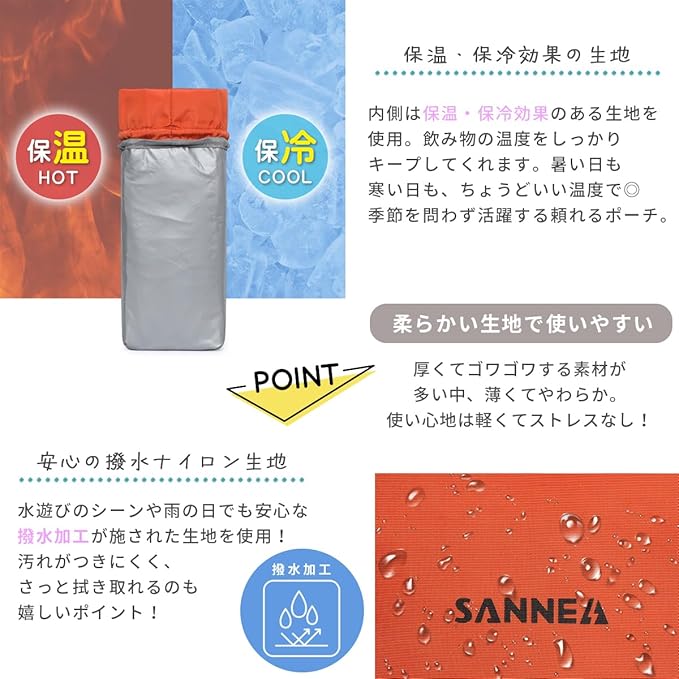 [mitt rom] スマホショルダー ボトルホルダー 保冷 保温 水筒カバー 軽量 撥水 斜めがけ 小さめ 子供 キッズ 大人 通園 公園 遠足 フェス 500ml~1000ml対応