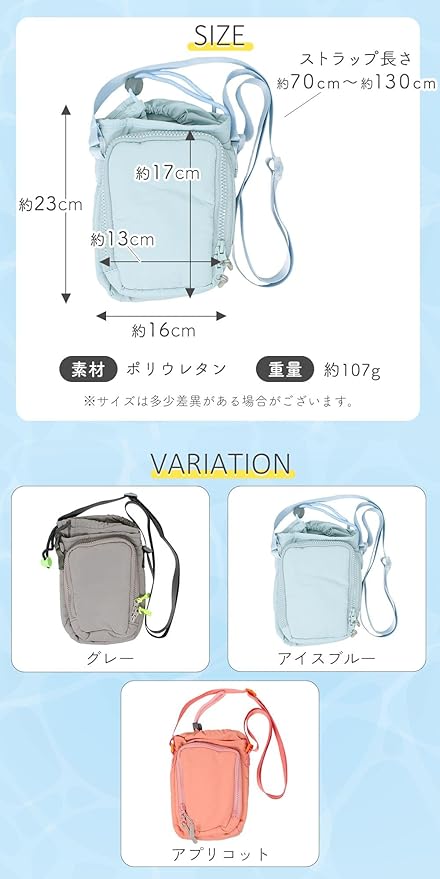 【スマホもペットボトルもすっぽり収納】スマホやお財布、直径10cmまでの500mlボトルも収まる万能サイズで、普段のお出かけに大活躍します。