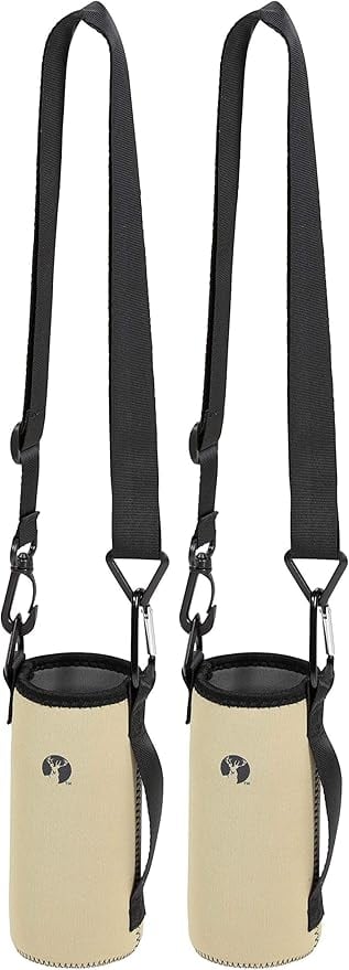 キャプテンスタッグ(CAPTAIN STAG) ペットボトルホルダー ボトルカバー ドリンクホルダー 水筒カバー CS ソフトボトルホルダー 肩掛けショルダーベルト付き 長さ調節可能 カラビナ付き 【ペットボトル500ml~ステンレスボトル500ml程度対応】 ベージュ ブラック UE-4921 ( 2)
