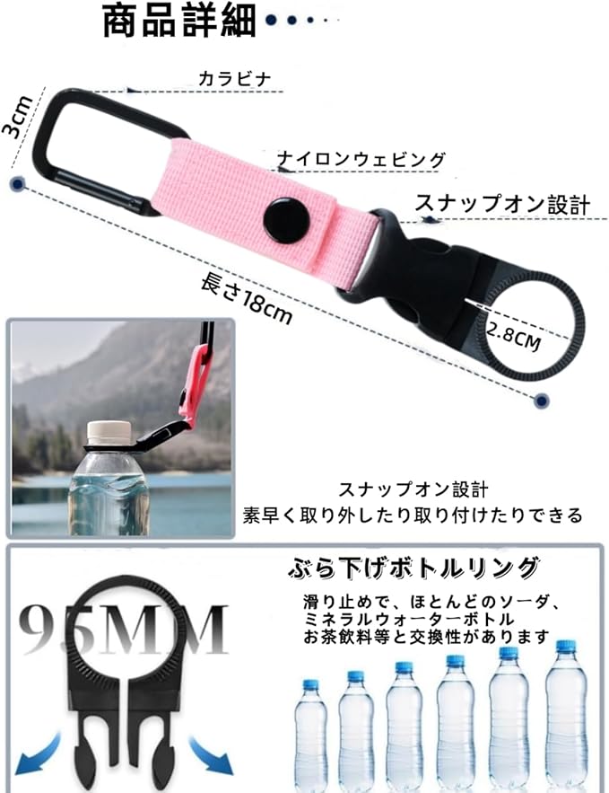 ペットボトルホルダー ドリンクホルダー カラビナ付き(取り外し可能)ベルトホールド可能 アウトドア 登山 キャンプ ハイキング 登山用 水分補給 着脱簡単Orange-Brown-Pink