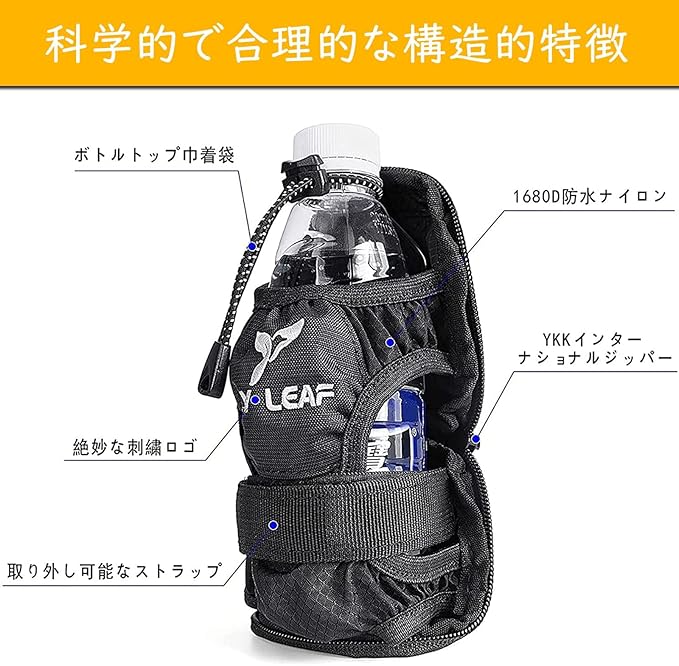 【スペース省くドリンクホルダー】付属のカラビナで、リュックやポーチに装着できます。ベルクロテープで腰のベルトにも携帯可能。