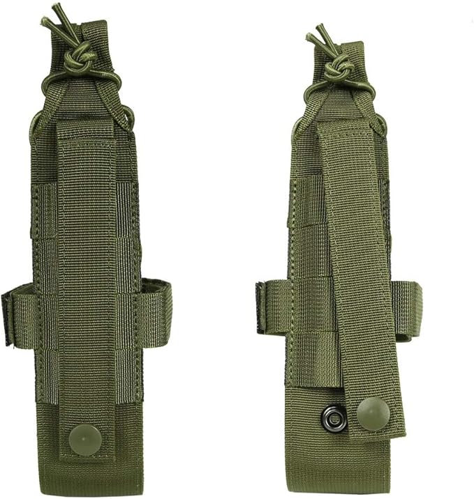 デザイン:背面にモールストラップ付きで、モール対応したバックパック、ベルト、ベストに取り付ける可能で、持ち運びには手軽です。マジックテープ式のベルトがサイズに合わせて調整可能です、いろんな直径のペットボトルや水筒が対応できます。上端のゴムバンドは自由に結束でき、安定感があります。